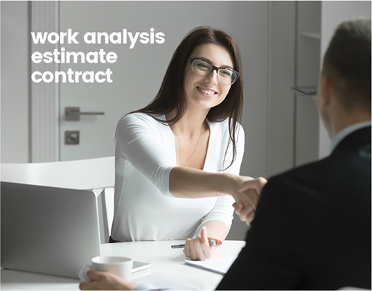 고객의 요청사항을 바탕으로 업무분석을 시작하며 이에 따른 견적이 도출됩니다. 고객의 결정이 내려지면 계약 진행을 포함하여 행정 업무가 마무리 됩니다.